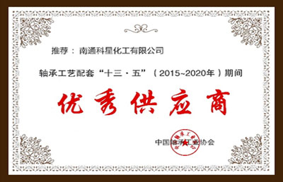 2020年12月8日,中國(guó)軸承工業(yè)協(xié)會(huì)第九屆會(huì)員大會(huì)在上海召開,南通科星化工有限公司喜獲中國(guó)軸承工業(yè)協(xié)會(huì)授予的“工藝配套優(yōu)秀供應(yīng)商”稱號(hào)。