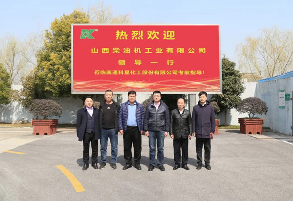 2023年3月6日,山西柴油機工業(yè)有限公司領導一行蒞臨南通科星化工股份有限公司生產(chǎn)基地考察指導,科星董事長吳龍鐵和總經(jīng)理傅士超熱情接待。