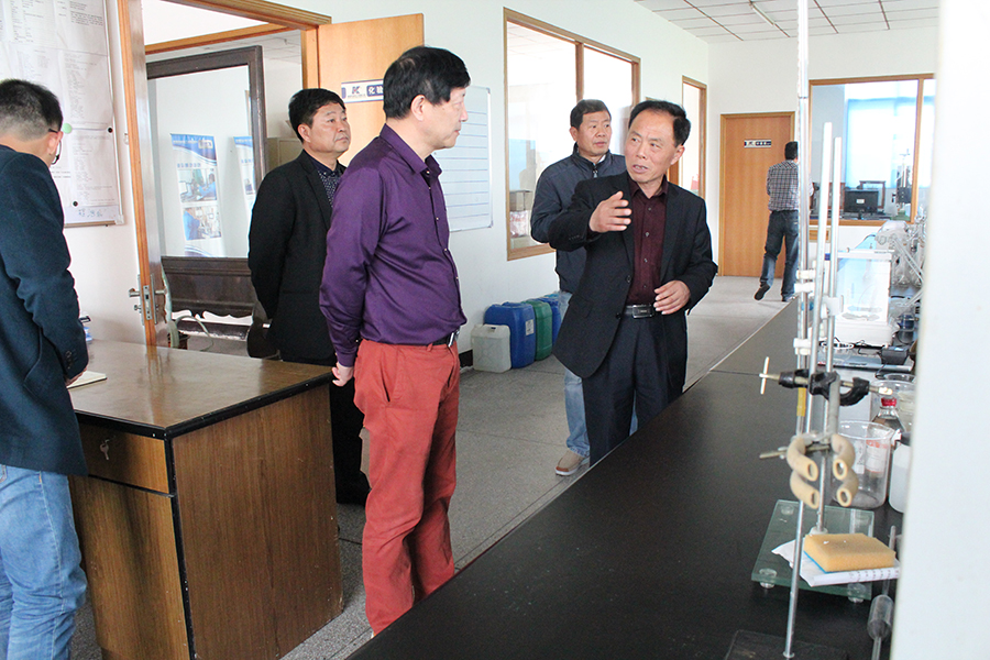 科星化工董事長吳龍鐵在化驗室向來賓講解產(chǎn)品檢測過程、介紹產(chǎn)品研發(fā)工藝。