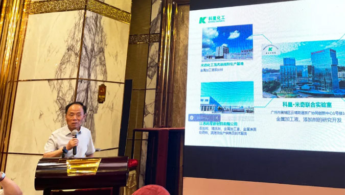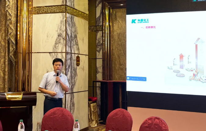 會議現(xiàn)場,廣州米奇化工有限公司總經(jīng)理、科星•米奇聯(lián)合實驗室主任李少林親自主講,帶來了題為《國際、國內(nèi)行業(yè)勢分析及給科星帶來的發(fā)展新機遇》的專業(yè)報告,現(xiàn)場掌聲連連。